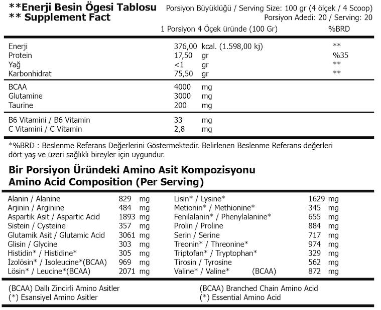 Bomb Serıes Bcaa+Glutamine İçeriği